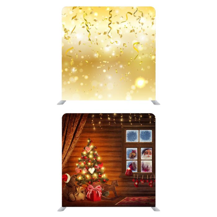 8ft*7.5ft Party Streamers and Warm Log Cabin Santa Xmas Backdrop. This tension fabric display kit is very easy to assemble.