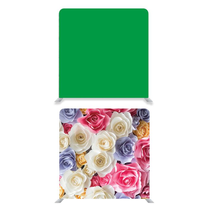 8ft*8ft Green Screen and Pretty Coloured Flowers Backdrop, With or Without Tension Frame. This tension fabric display kit is very easy to assemble. It consists of a lightweight, but strong, aluminium frame, with middle support bar for extra strength, and a stunning, wrinkle-free, tension fabric, pillowcase backdrop. Very easy to assemble, in less than 10 minutes for a quick and easy set up.