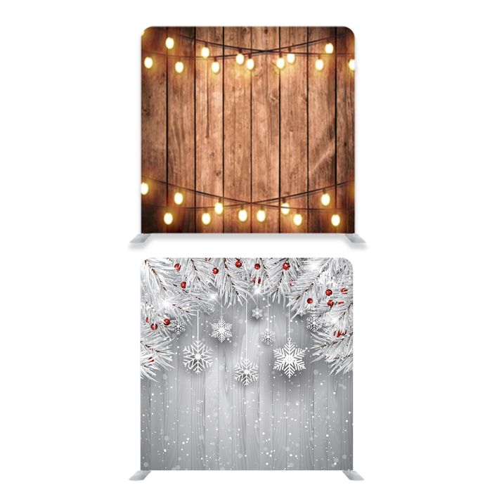 8ft*8ft Rustic Wood with Fairy Lights And Snowy Fir Tree Xmas Backdrop, With or Without Tension Frame. This tension fabric display kit is very easy to assemble. It consists of a lightweight, but strong, aluminium frame, with a middle support bar for extra strength, and a stunning, wrinkle-free, tension fabric, pillowcase backdrop. Very easy to assemble, in less than 10 minutes for a quick and easy set up.