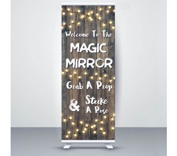 Dark Rustic Wood With Fairy Light ‘Magic Mirror’ Roller Banner