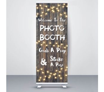 Dark Rustic Wood With Fairy Light ‘Photo Booth’ Roller Banner