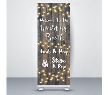 Dark Rustic Wood With Fairy Light ‘Wedding Booth’ Roller Banner