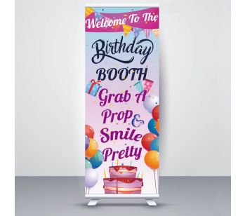 Pastel Pink & Purple Celebration Balloons ‘ Birthday Booth Smile Pretty’ Roller Banner