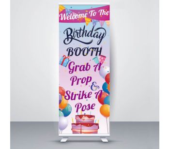 Pastel Pink & Purple Celebration Balloons ‘ Birthday Booth Strike A Pose’ Roller Banner