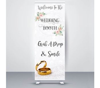 Pretty Glitzy Sand With Gold Rings ‘Wedding Booth’ Roller Banner