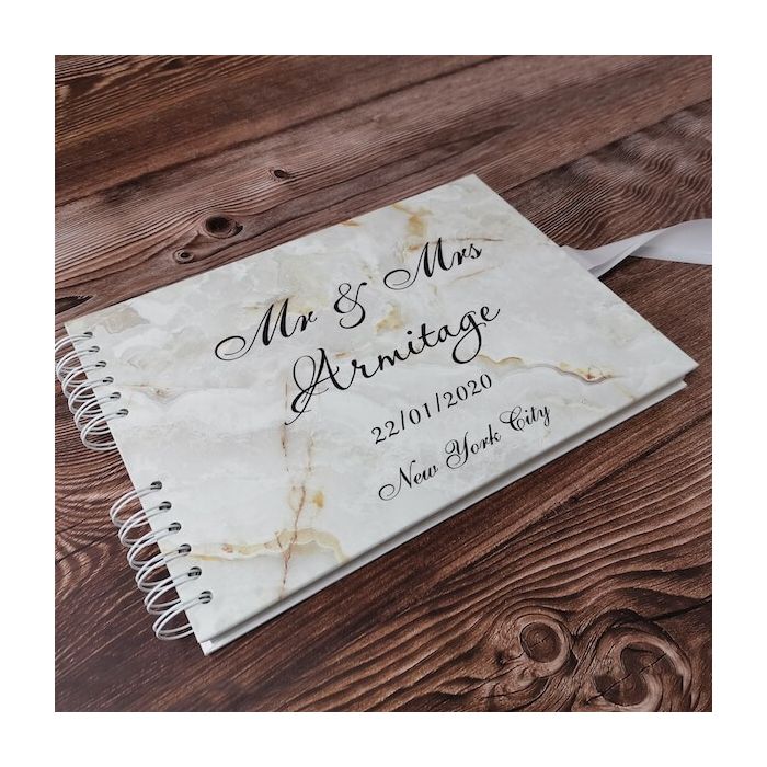 Personalised Gold Marble Detail Guestbook with Different Page Options. Introducing our brand-new stunning range of guest books designed and made exclusively by our team which you won't find anywhere else! There is a range of extremely high-quality books to choose from that are 30cm x 21cm in size and have very thick covers and pages. These books have 40 pages, meaning 80 sheets to stick photos and write on and decorate however you please!