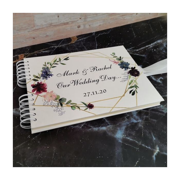 Personalised Watercolour Flowers and Gold Frame Guestbook with Different Page Options.
