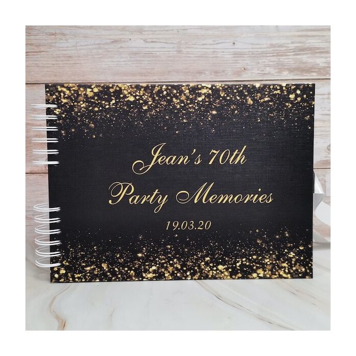 Personalised Black & Gold Glitter Ombre Guestbook with Page Style Options. Introducing our brand-new stunning range of guestbooks designed and made exclusively by our team which you won't find anywhere else! There is a range of extremely high-quality books to choose from that are 30cm x 21cm in size and have very thick covers and pages. These books have 40 pages, meaning 80 sheets to stick photos and write on and decorate however you please!