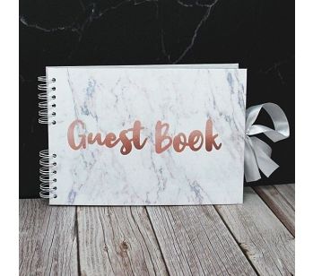 Good Size Marble Guestbook With Copper ‘Guest Book’ Message With 6x4 Printed Pages