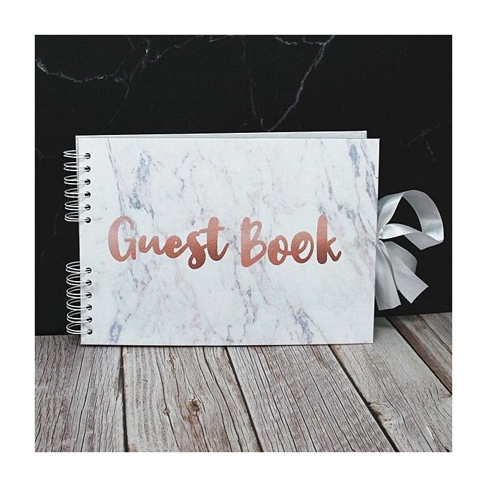 Good Size Marble Guestbook With Copper ‘Guest Book’ Message