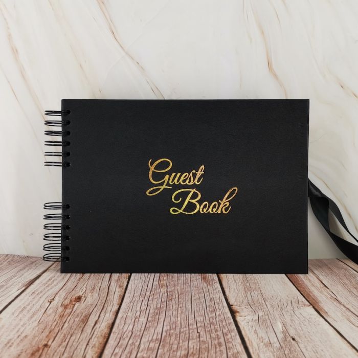 Good Size, Black Guestbook with Golden ‘Guest book ‘ Message & Slight Leather Affect Covers