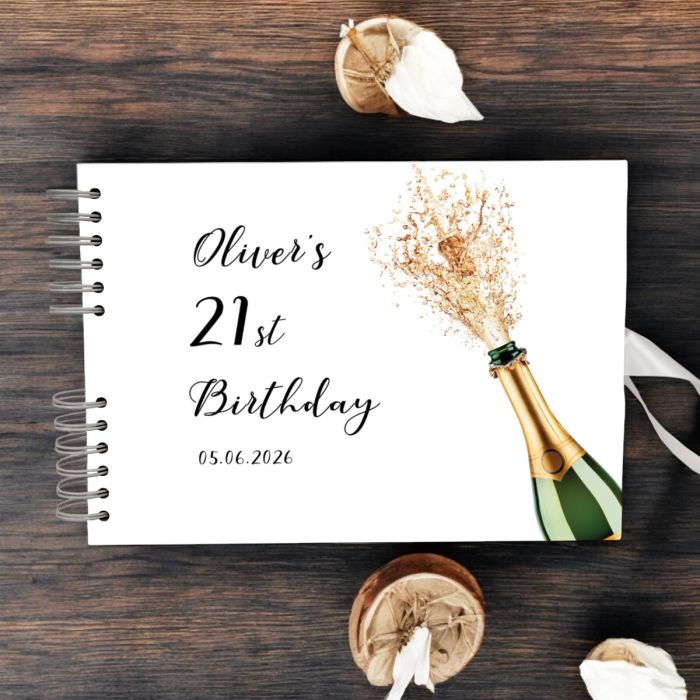 The Champagne Birthday Guest Book can be personalised with names and dates of your choice.
