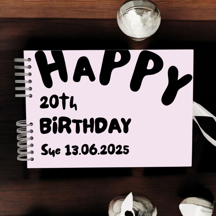 The Pink & Black Bold Typography Birthday Guest Book can be personalised with names and dates of your choice.