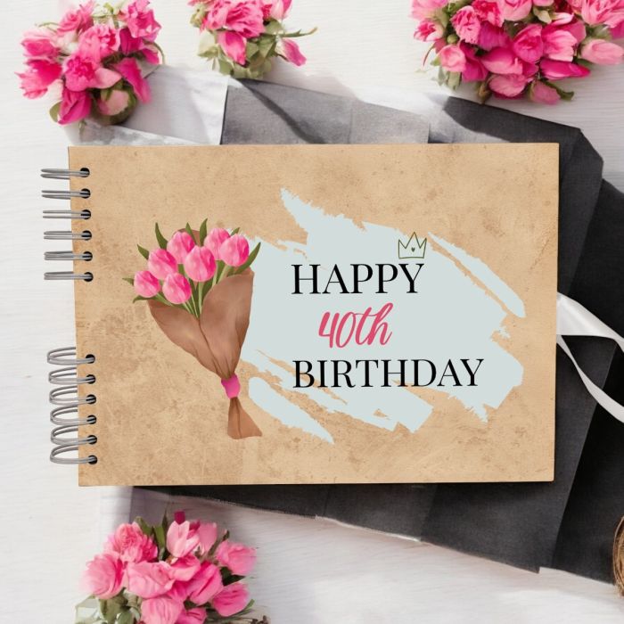 The Tulip Bouquet Birthday Guest Book can be personalised with names and dates of your choice.
