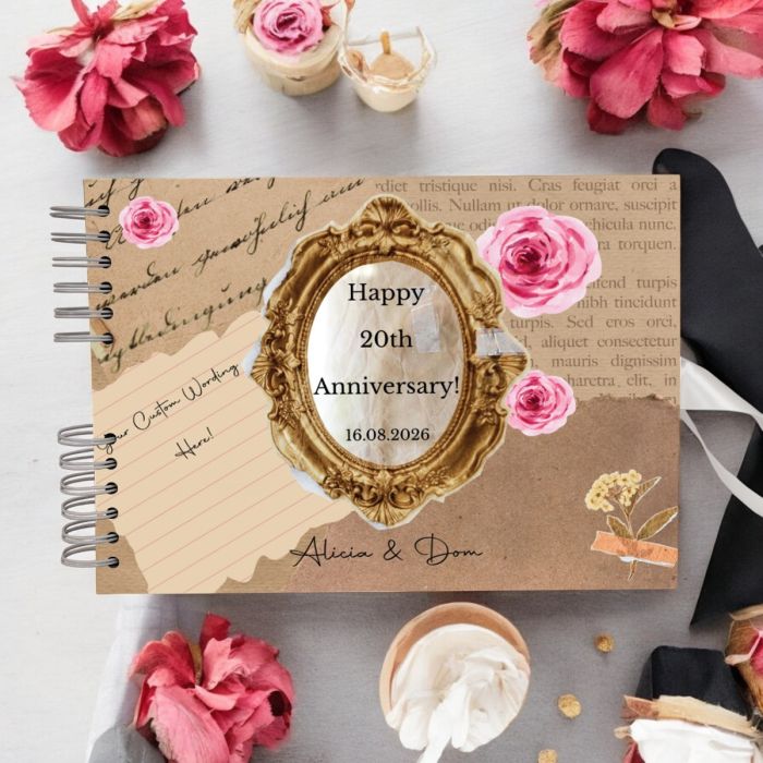 The Vintage Mirror Frame Anniversary Guest Book can be personalised with names and dates of your choice.