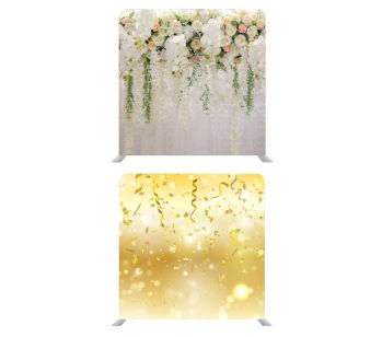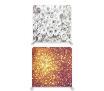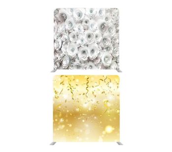 8ft*7.5ft White Roses and Gold Glitter with Party Streamers Backdrop, With or Without Tension Frame