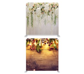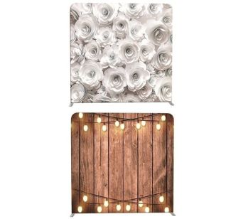 8ft*8ft Rustic Wood with Fairy Lights and Plain White Backdrop, With or Without Tension Frame