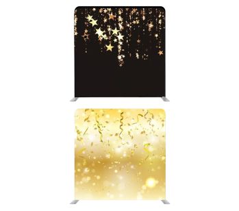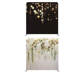 8ft*7.5ft Black With Gold Falling Stars and Beautiful Pastel Flowers Foliages Backdrop, With or Without Tension Frame