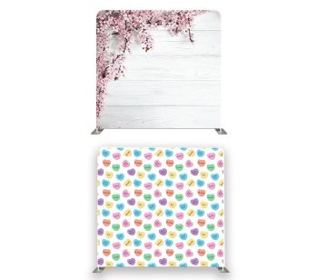 8ft*8ft Candy Hearts And White Wood Cherry Blossom Backdrop, With or Without Tension Frame