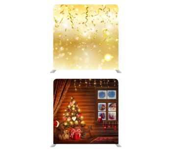 8ft*8ft Rustic Wood With Fairy Lights and Cozy Festive Room Xmas Backdrop, With or Without Tension Frame