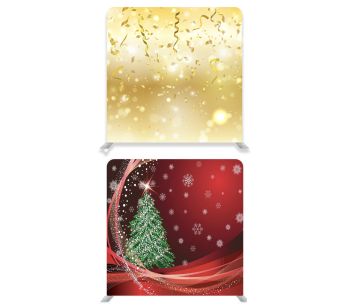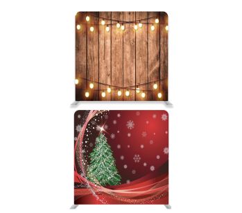 8ft*8ft Rustic Wood with Fairy Lights And Red Snowy Green Xmas Tree Backdrop, With or Without Tension Frame