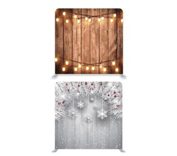 8ft*8ft Rustic Wood with Fairy Lights And Snowy Fir Tree Xmas Backdrop, With or Without Tension Frame