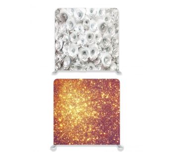 8ft*8ft Beautiful Pastel Flowers Foliages and Black & Gold VIP Backdrop, With or Without Tension Frame