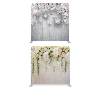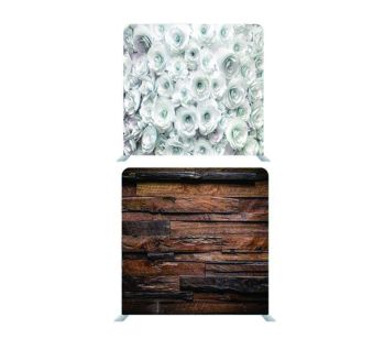 8ft*7.5ft Plain Rustic Wood and White Roses Backdrop, With or Without Tension Frame
