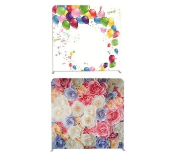 8ft*8ft Balloon Party Scene and Pretty Coloured Flowers Backdrop, With or Without Tension Frame