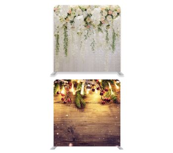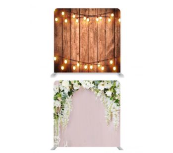 8ft*8ft White Chesterfield and Rustic Wood with Fairy Lights Backdrop, With or Without Tension Frame