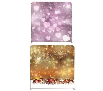 8ft*8ft Merry Xmas Scene & Purple Love Hearts Backdrop, With or Without Tension Frame