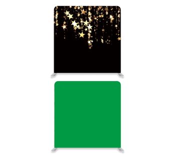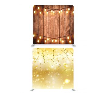 8ft*8ft Wood with Fairy Lights and Black with Gold Falling Stars Backdrop, With or Without Tension Frame
