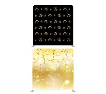 8ft*8ft Black & Gold VIP and Party Streamers Backdrop, With or Without Tension Frame