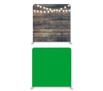 8ft*8ft Green Screen and Dark Rustic Wood with Fairy Lights Double-Sided Backdrop