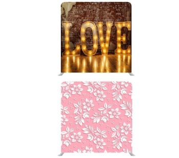 8ft*8ft Rustic Wood with Fairy Lights and Pastel Flowers on Pink Background Backdrop, With or Without Tension Frame