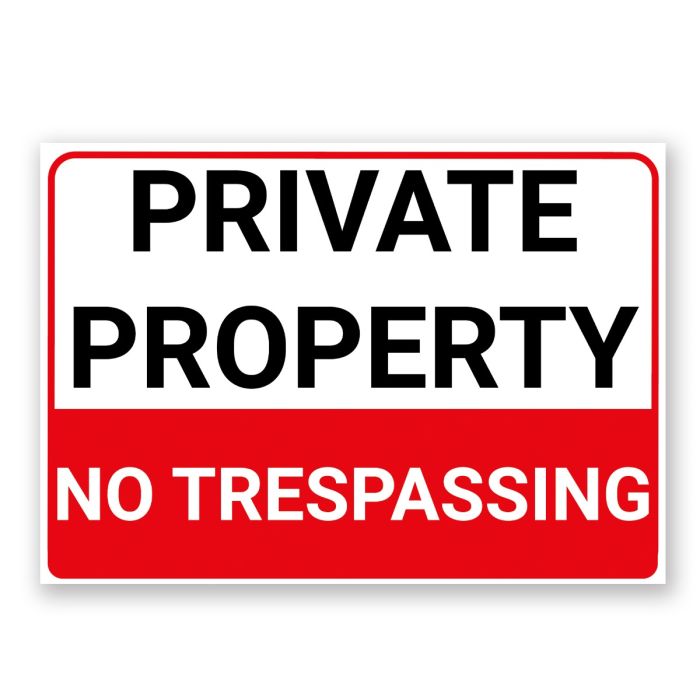 Our 'PRIVATE PROPERTY NO TRESPASSING' warning sign is a colourful and bright way of letting people know that they can go no further. Made from very flexible 1mm PVC material that will not break or crack.